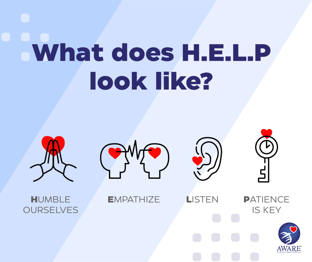 - Advance our A.W.A.R.E. footprint across the US & around the globe. Host an AWARE orientation in your community or online with first responders, hospitals, houses of spiritual worship, mental health organizations. Join our AWARE team as a state or country representative.
