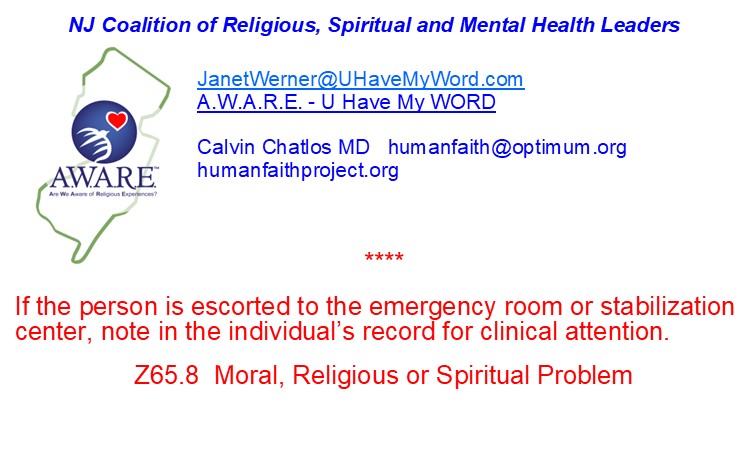 We issued a proposal to the State of New Jersey to include the religious & spiritual part of mental health crisis calls in 988 training.