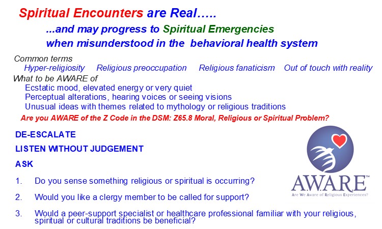 Are We AWARE of Religious & spiritual Experiences in mental health crisis?