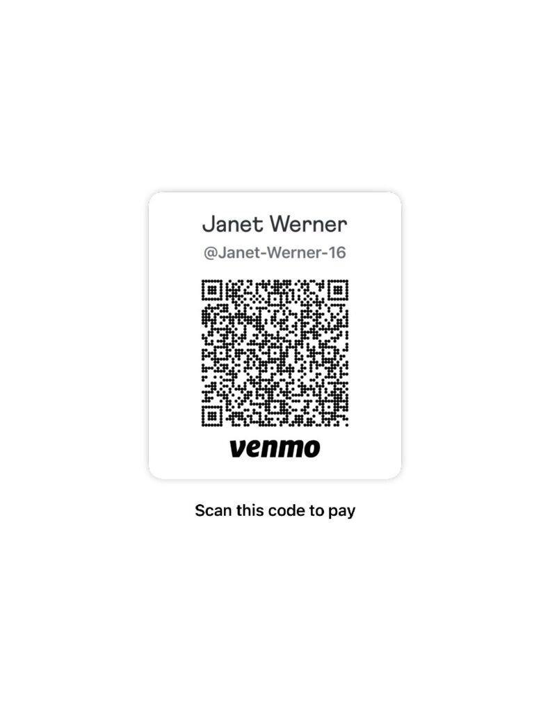 You may also mail your check payable to U Have My Word LLC to Janet Werner, 21 Cove Place, Bayville, NJ 08721 or send via Zelle or Venmo.